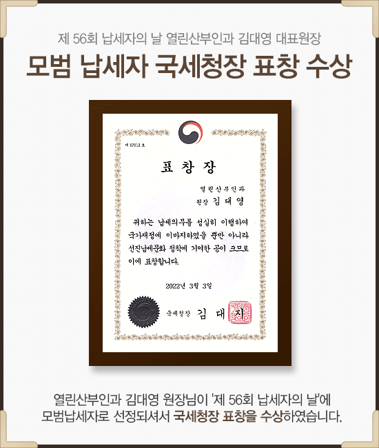 ¸ð¹ü ³³¼¼ÀÚ ±¹¼¼Ã»Àå ǥâ ¼ö»ó